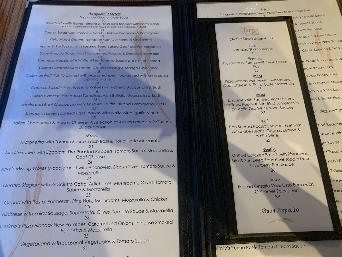 Menu - Farro Ristorante